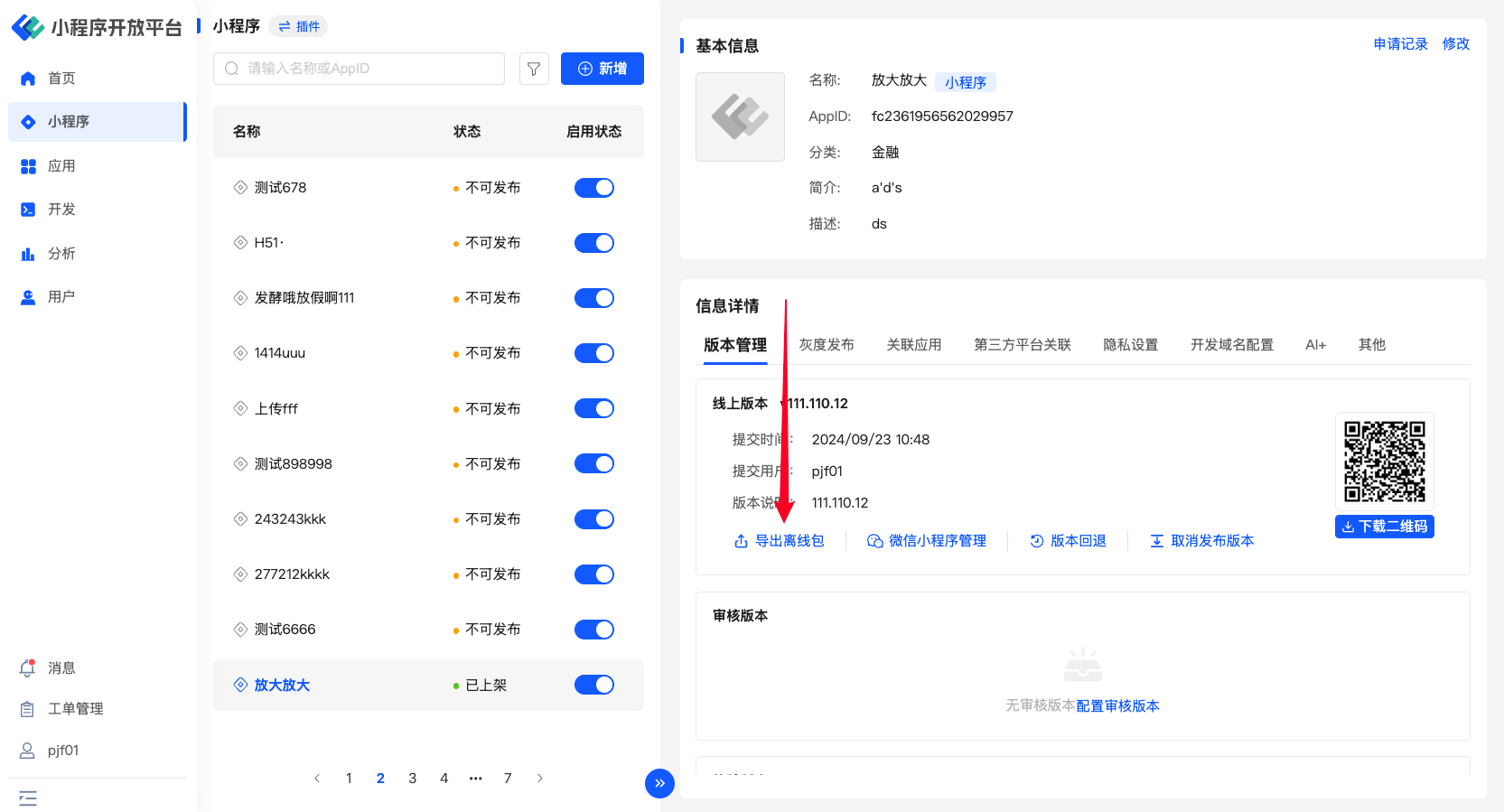这种情况流程一般会复杂一些,需要先扫描FinClip小程序开放平台上的二维码,得到二维码里的内容,然后使用二维码内容调用该接口打开小程序。