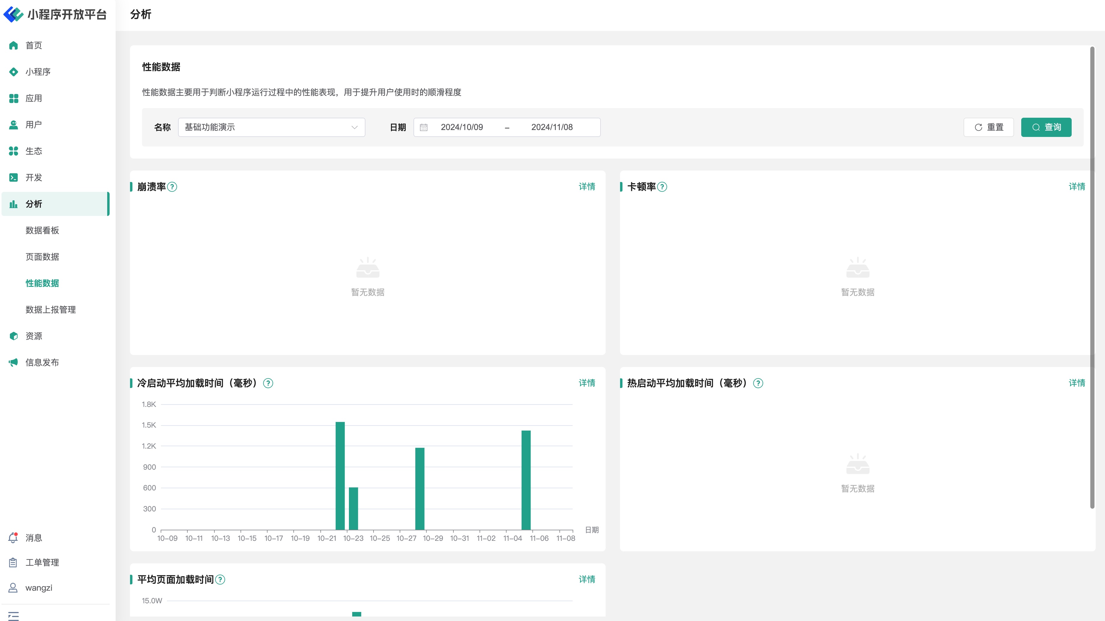 - 平均页面加载时间:小程序所有页面加载的平均时间。