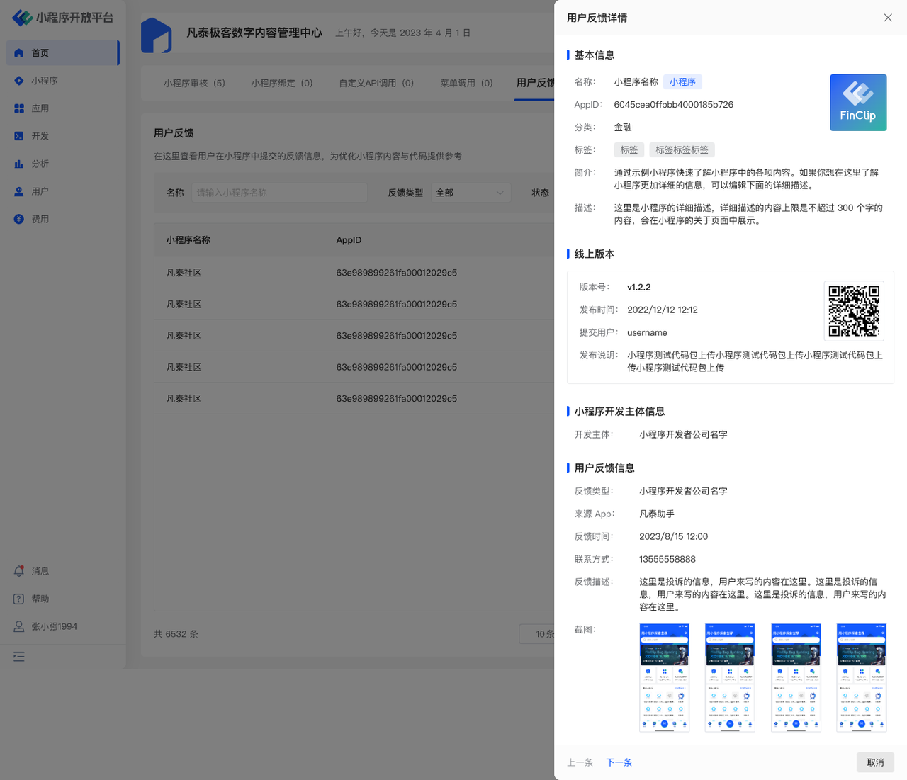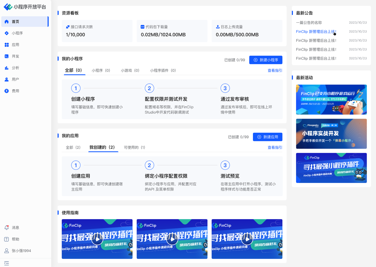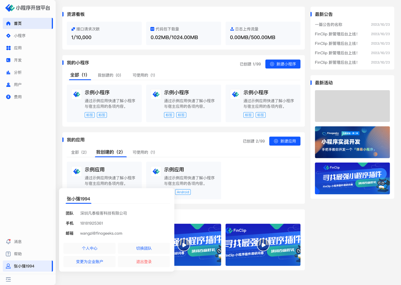 开发者可通过「 FinClip APP 」获得丰富的开发协助,下载请前往:「 FinClip APP 」下载链接 (opens new window)