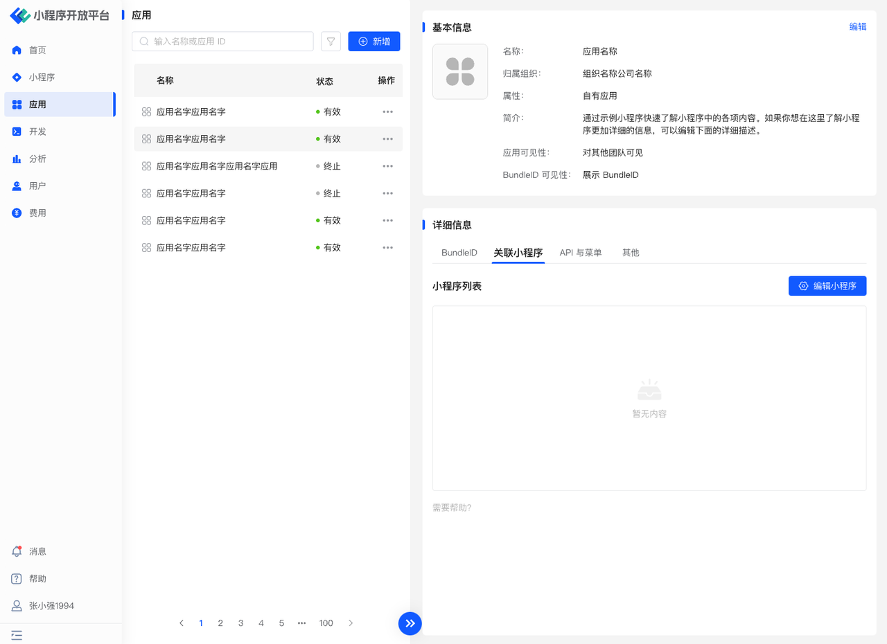 路径:应用-详情-关联小程序-编辑小程序