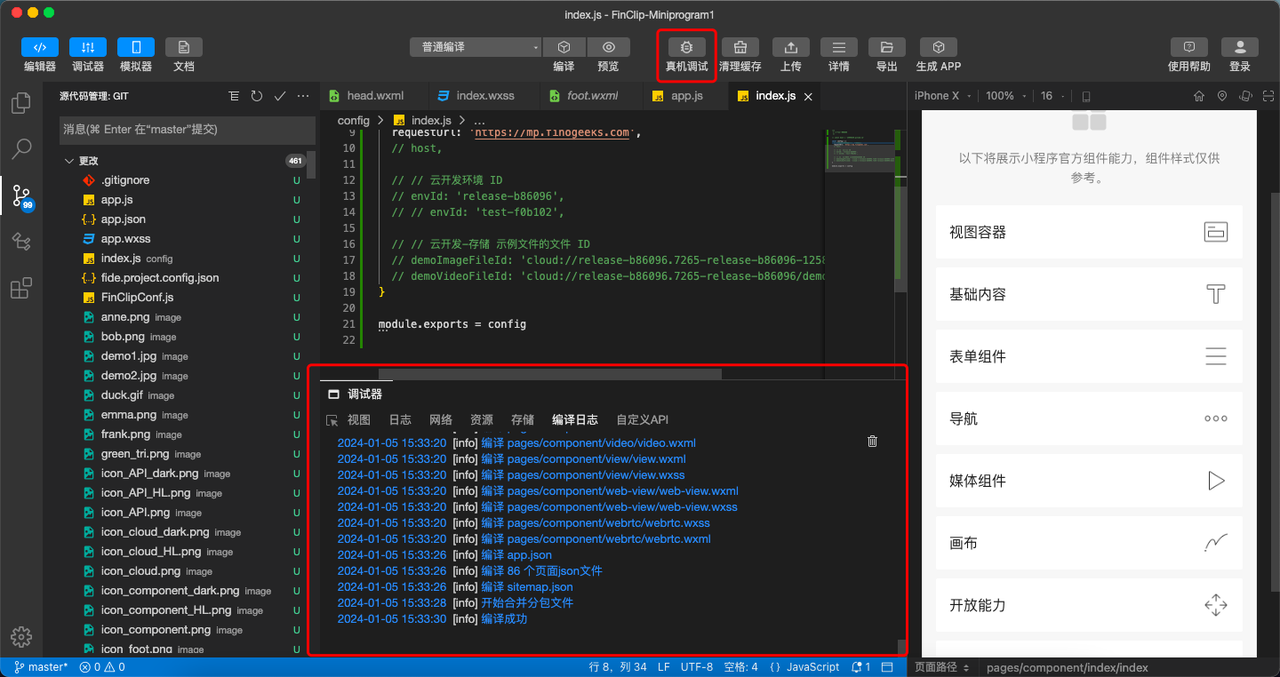 您可以通过 FinClip Studio 进行实时预览调试,或将小程序设置为体验版进行调试