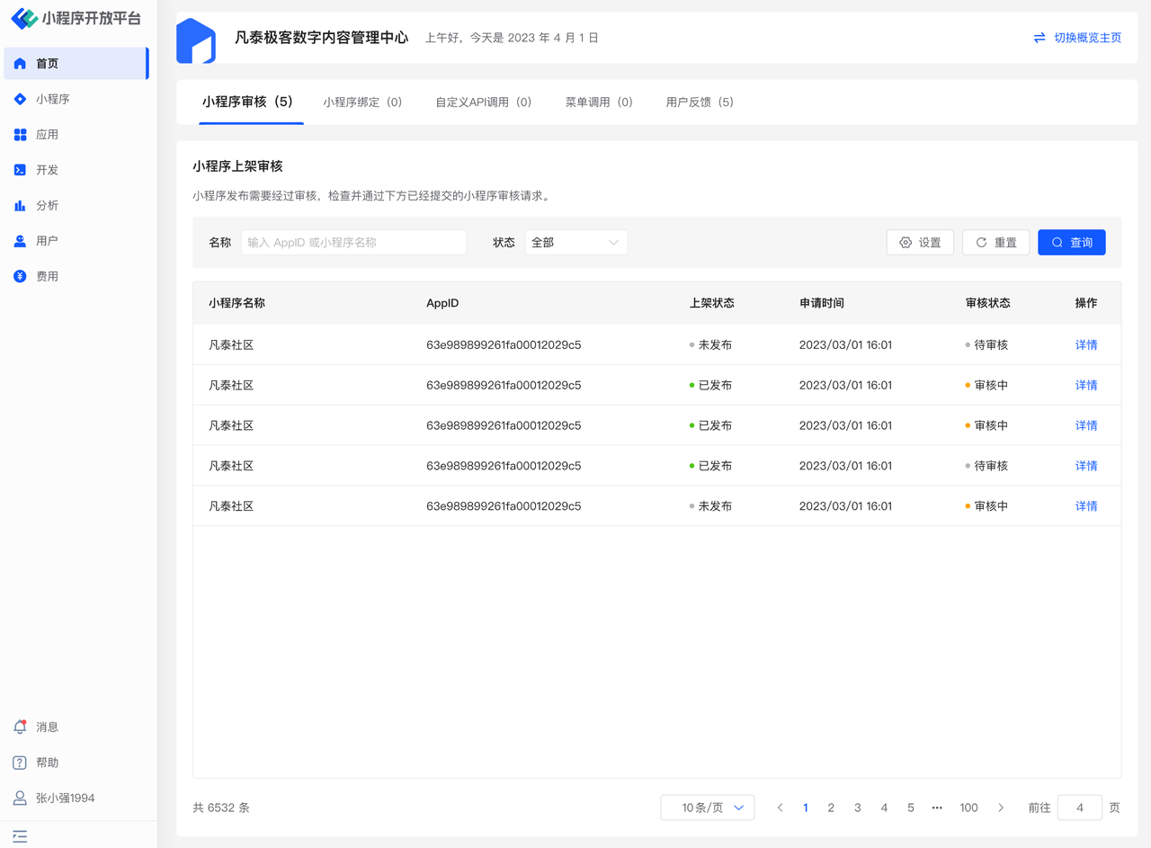 在「小程序详情 - 其他 - 小程序历史审核记录」中,则可看到当前小程序的所有审核历史记录。