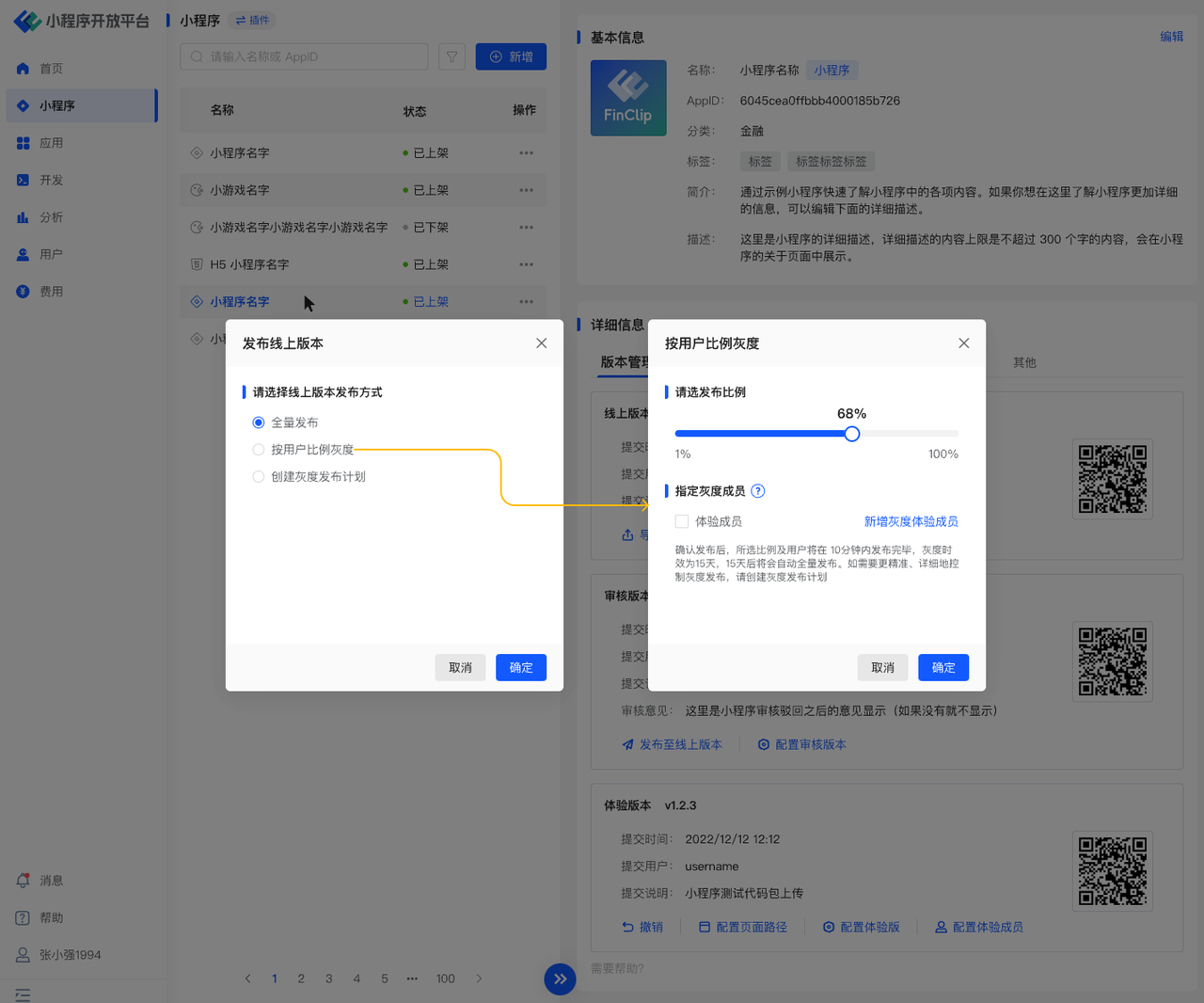 - 全量发布,即直接推送至全体用户,用户可在发布后打开最新版小程序;