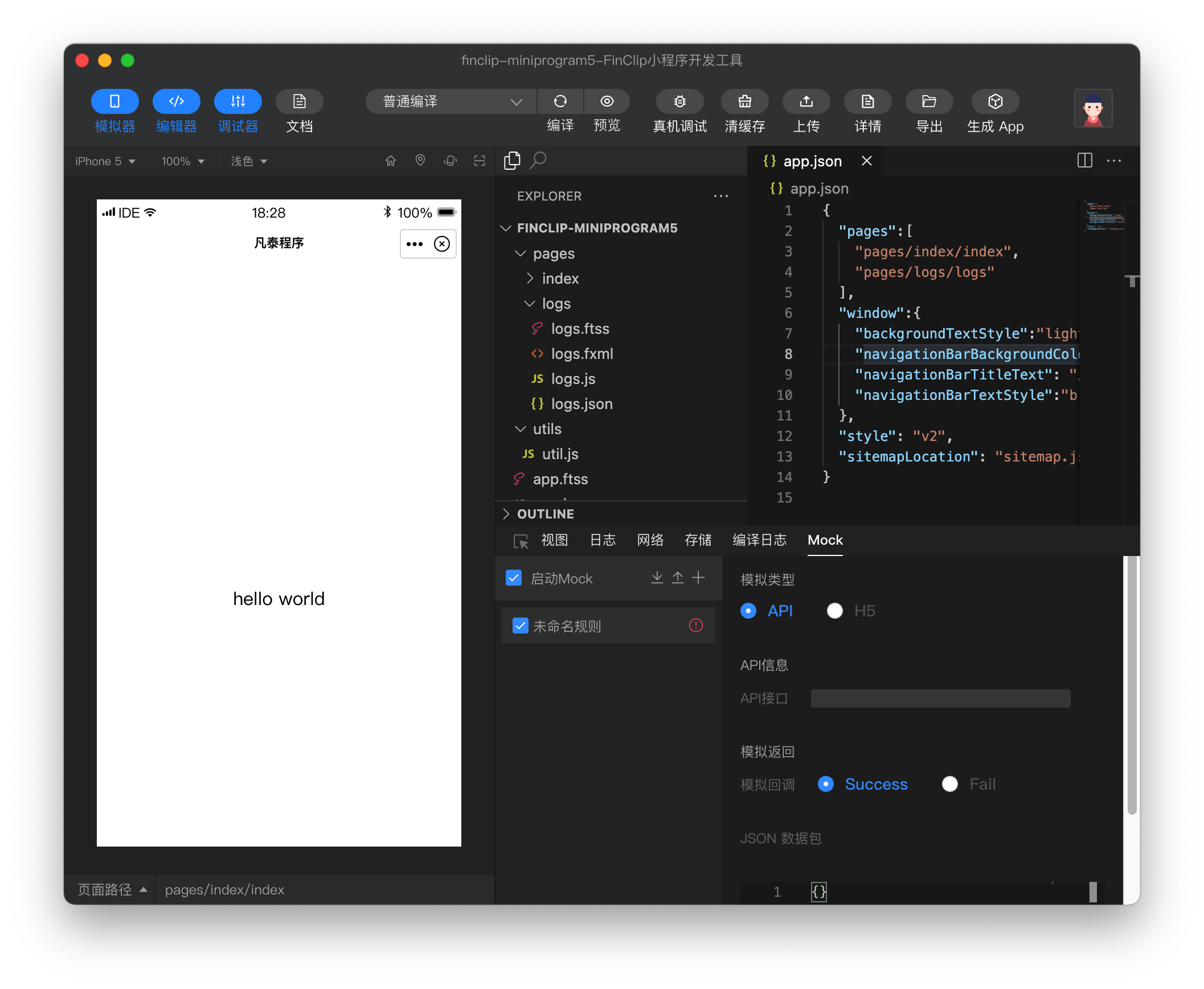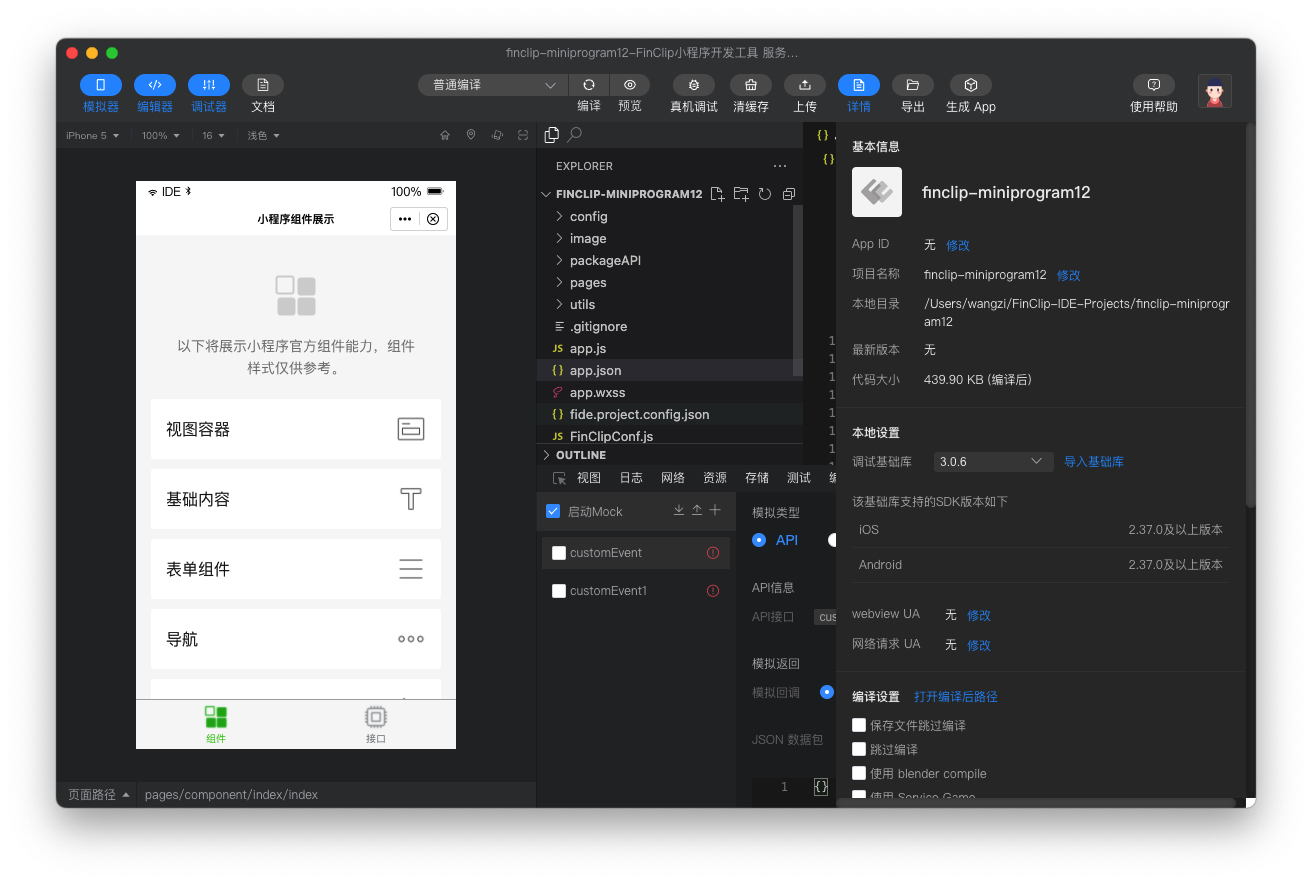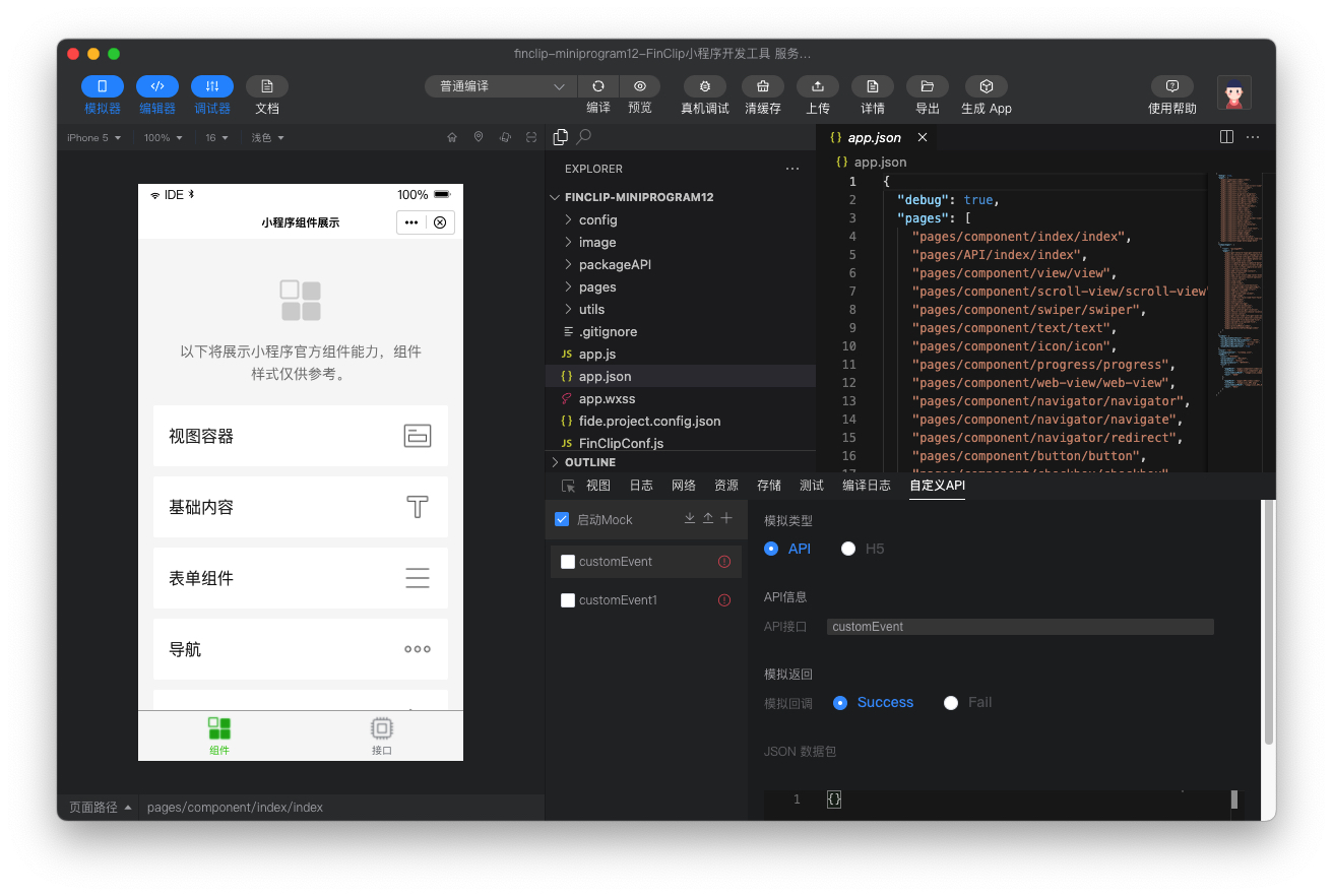 与常见小程序FinClip Studio 不同,由于 FinClip 小程序可以在开发者自有的 App 中使用,因此 FinClip Studio 中还提供了 API Mock 的能力。开发者可以通过该功能对所有与 SDK 通讯的原生接口进行修改。