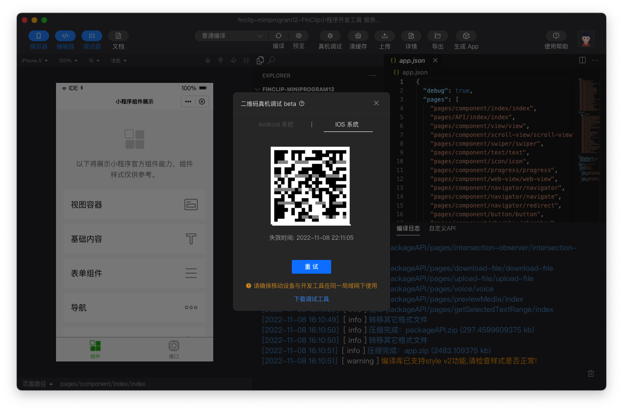 真机调试功能通过网络连接,在真实移动设备上扫码打开小程序,同时在 FinClip Studio 上实现小程序开发调试,帮助开发者在接近真机的环境下,快速定位问题。