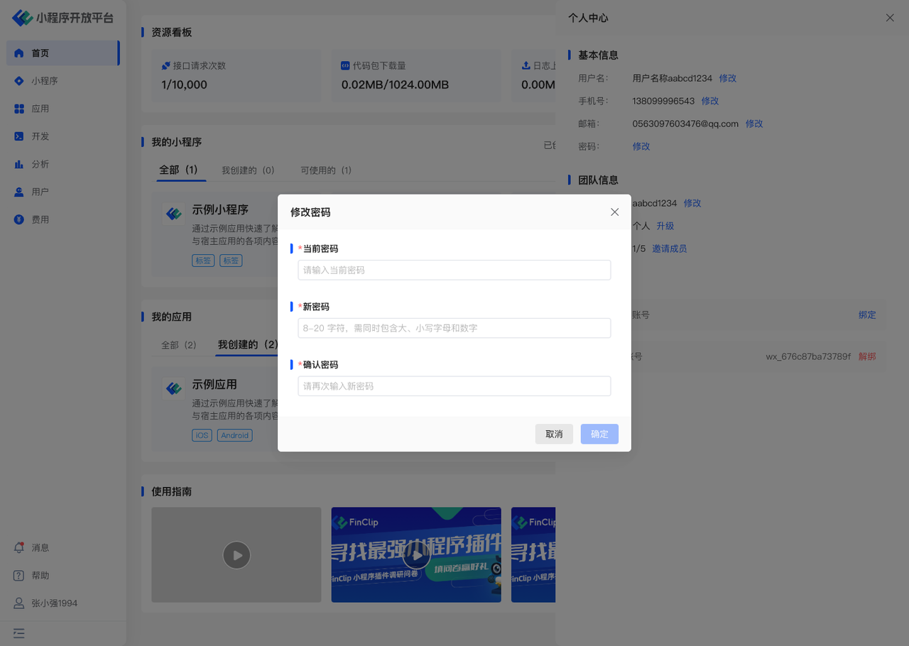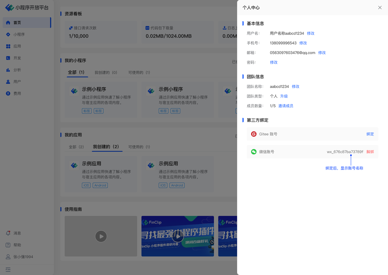 # 个人中心与消息-开发中心
