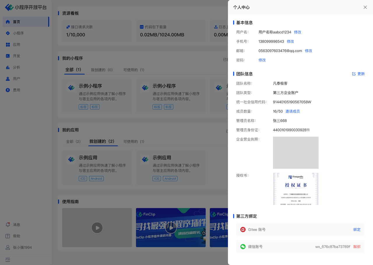 # 1.个人中心