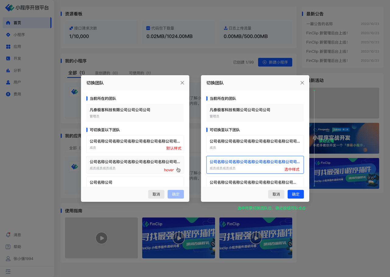 - 当用户加入多个组织时,可通过个人中心切换不同组织,进入对应的管理后台