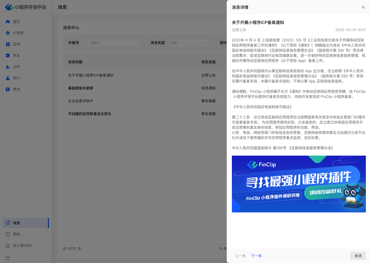 - 点击任一「消息」,可查看具体详情,支持通过「上一条」和「下一条」快速切换