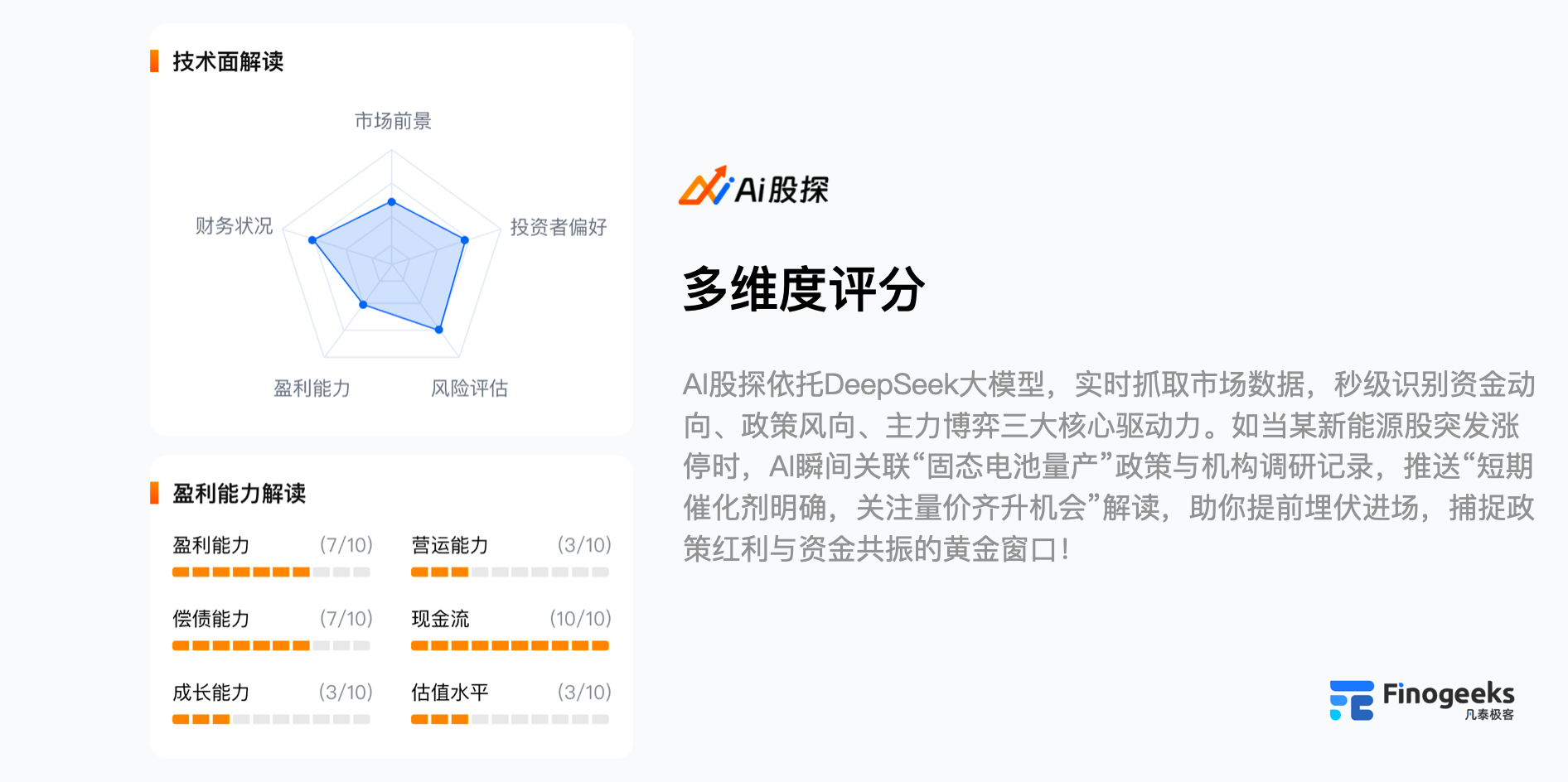 AI股探依托DeepSeek大模型,实时解析市场数据,智能评分个股价值并预警风险,助力散户科学决策