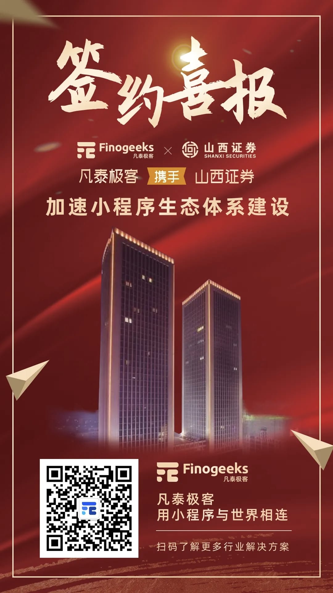 近日,深圳凡泰极客科技有限责任公司(以下简称“凡泰极客”)与山西证券股份有限公司(以下简称“山西证券”)完成签约。双方基于凡泰极客旗下核心产品 FinClip 技术,落地券商小程序平台的建设,助力证券业的持续快速发展。