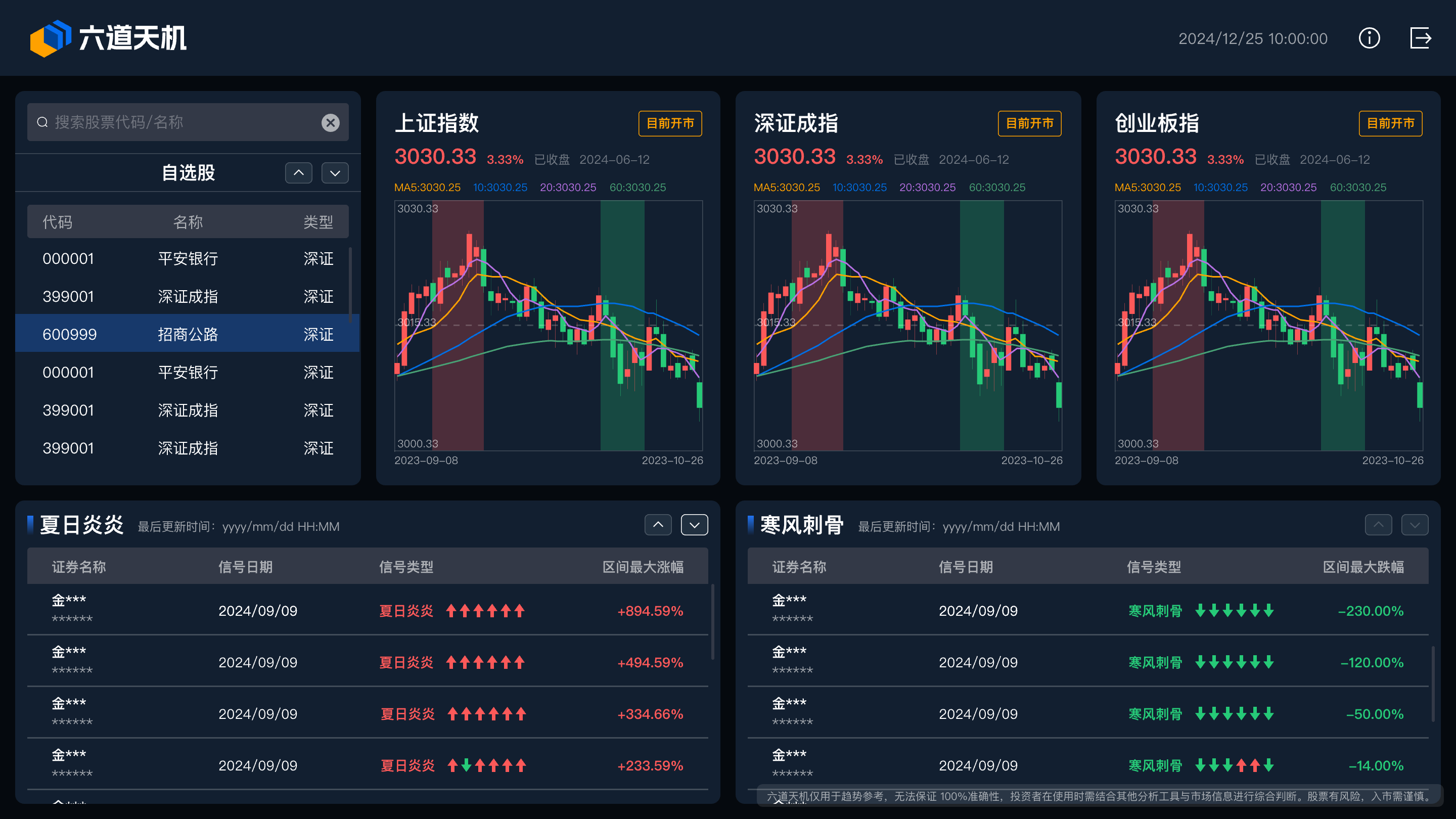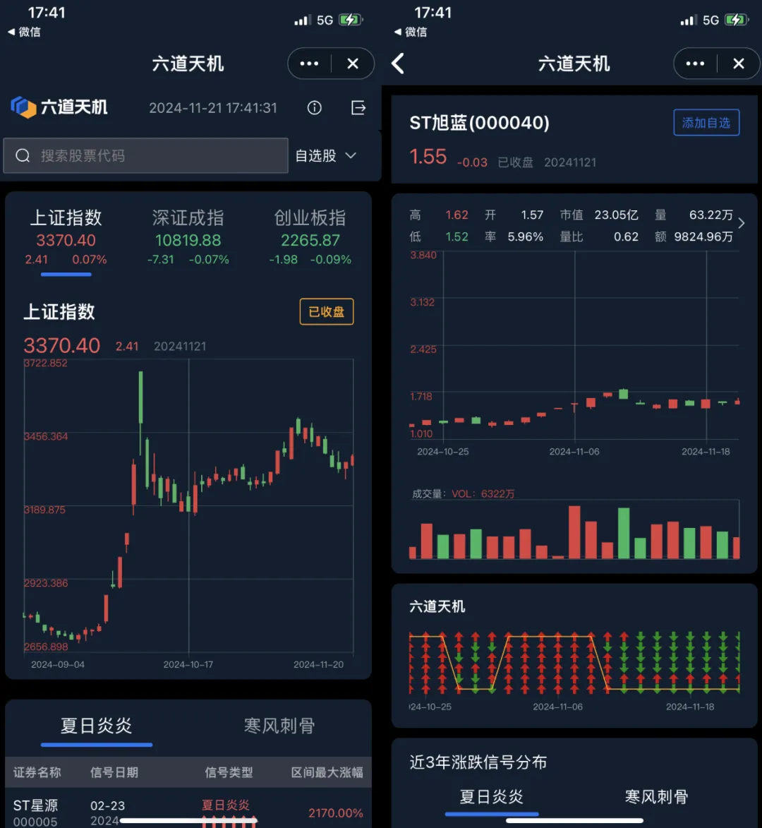近日我们推出了一款全新的股票行情类小程序工具——“六道天机”。这款产品凭借其独特的六维指标体系和全方位的市场分析功能,为投资者提供了一个全新的视角来分析和把握股市动态。