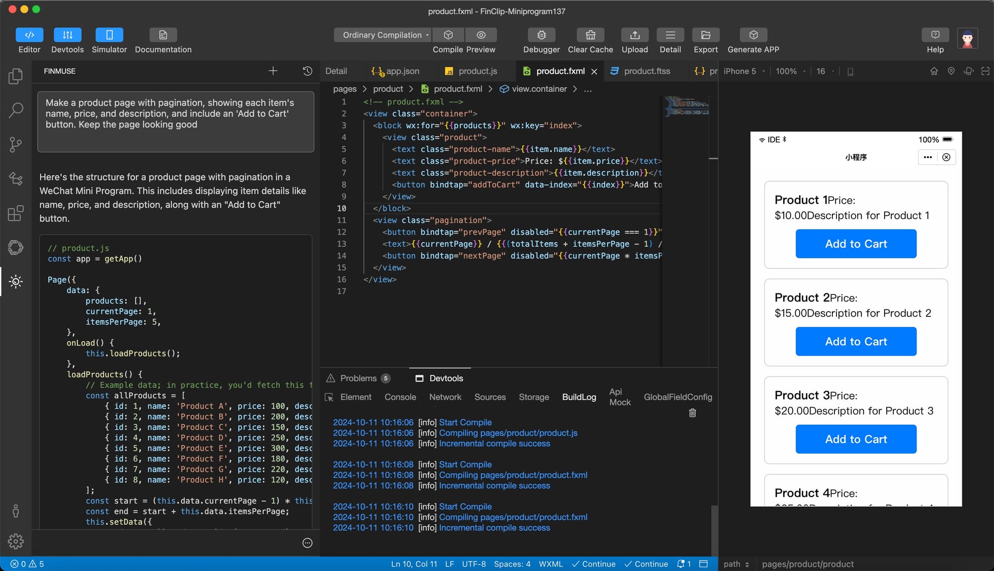 FinClip Studio AI Plugin 的出现,彻底颠覆了传统的开发模式。它就像一位资深的开发大拿,能理解你的需求,为你量身定制代码。只需简单描述你的想法,AI Plugin 就能帮你自动生成小程序页面代码,加速小程序开发。