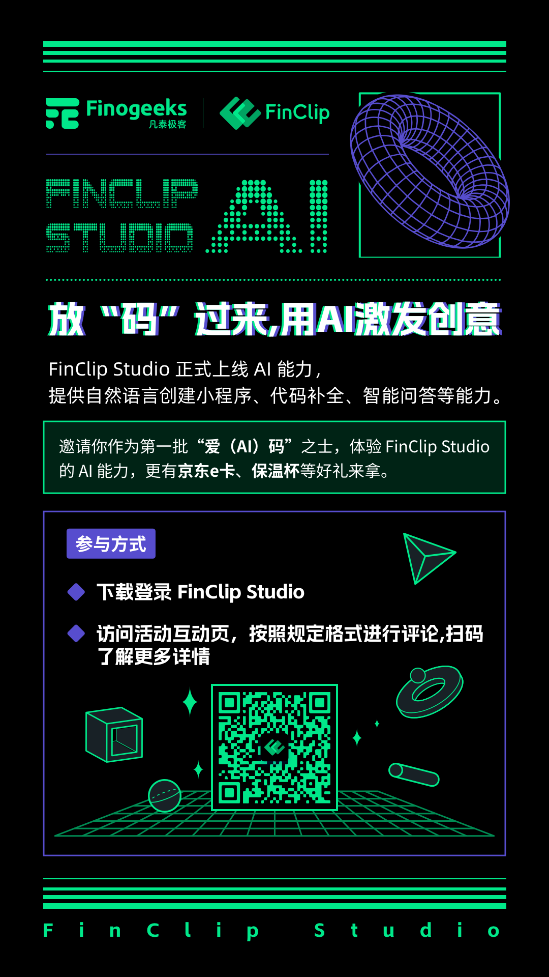 别着急划走,随着产品的更新,我们也特此举办了 FinClip Studio AI Plugin 体验活动,欢迎大家测评,给予建议