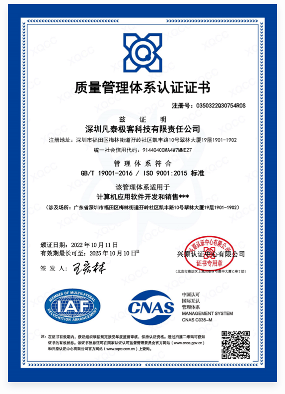 凡泰极客已经于 2019 年由广东省认定机构办公室认定为国家高新技术企业。