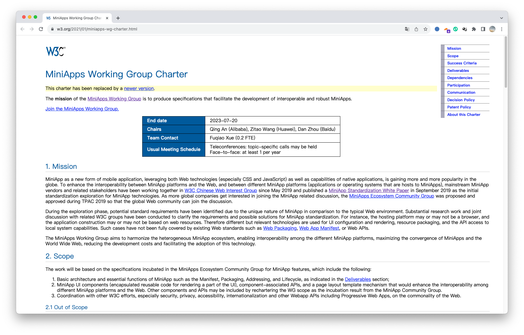 为了帮助小程序进一步的开发,Telegram 的创始人 Pavel Durov 和其开发团队也尝试向开发小程序的源头公司进行求助,这家开发小程序的源头公司即是我们所熟知的国内互联网公司腾讯。而在国际市场中,也有 W3C 这样的国际组织将小程序纳入了国际规范。