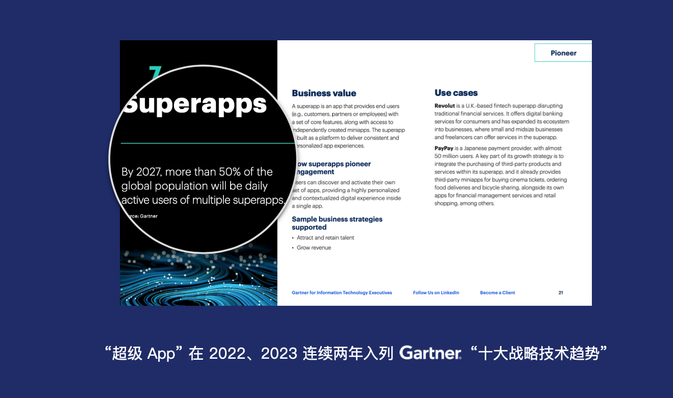 “超级 App”在 2022、2023连续两年入列 Gartner 十大战略技术趋势