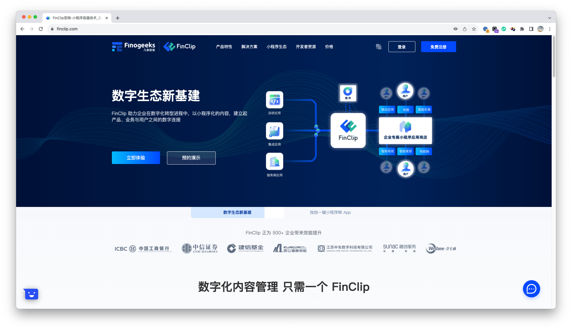 FinClip 是一款让自有 App 中小程序进行数字化内容管理的产品