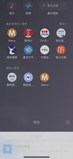 在这款超级应用中,小程序被存储在屏幕顶部的一个隐藏面板中,用户可以通过向下滑动屏幕来打开小程序。在这样的设计理念中,小程序几乎消失于所有地方却又无处不在。