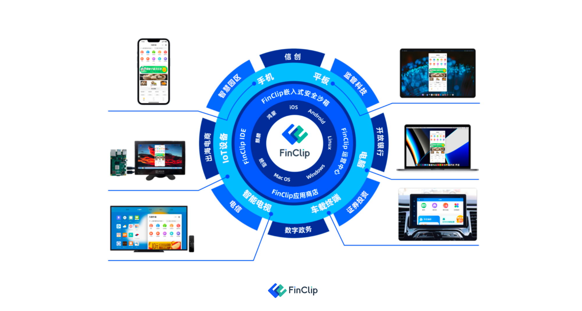 在硬件设备中,Cliptrix 能够带来较为优异的硬件设备适配体验,目前 FinClip 已经支持小程序在手机,智能电视,车载大屏等多种硬件中使用。