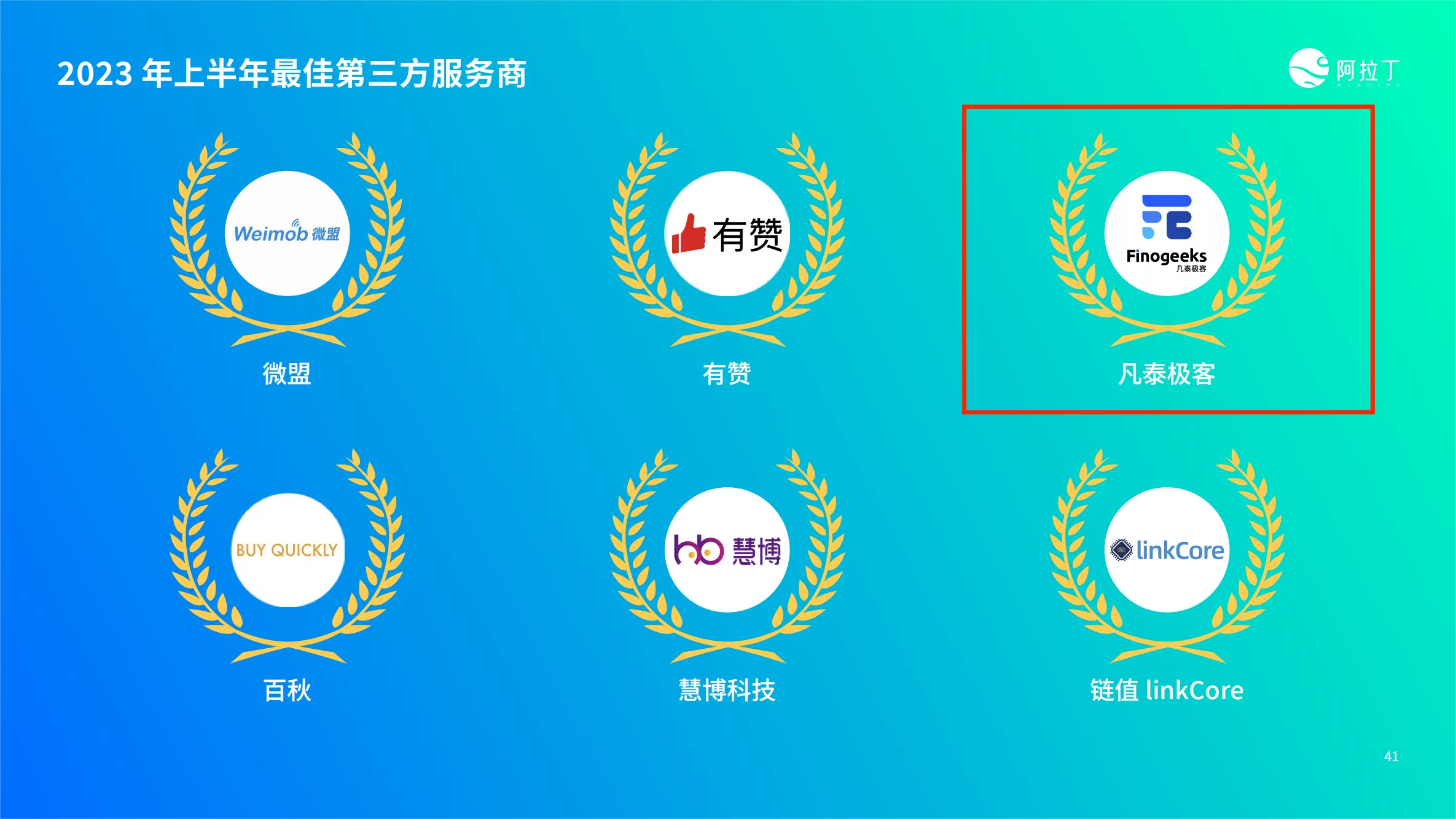 此次白皮书发布,凡泰极客作为市场领先的企业端小程序解决方案提供商,凭借其领先的 FinClip 小程序技术及服务再度入选,并与微盟、有赞等共同荣获「 2023年上半年最佳第三方服务商」。