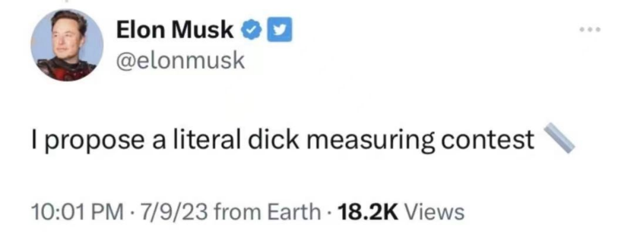 前段时间闹得沸沸扬扬的“马扎大战”再出新剧情,继“笼斗”约架被马斯克妈妈及时叫停之后,马斯克在7月9日再次向扎克伯克打起嘴炮,这次不仅怒骂小扎是混蛋,还要公开和他比大小?!!此番马斯克的疯狂言论,让网友直呼他不是疯了就是账号被盗了。