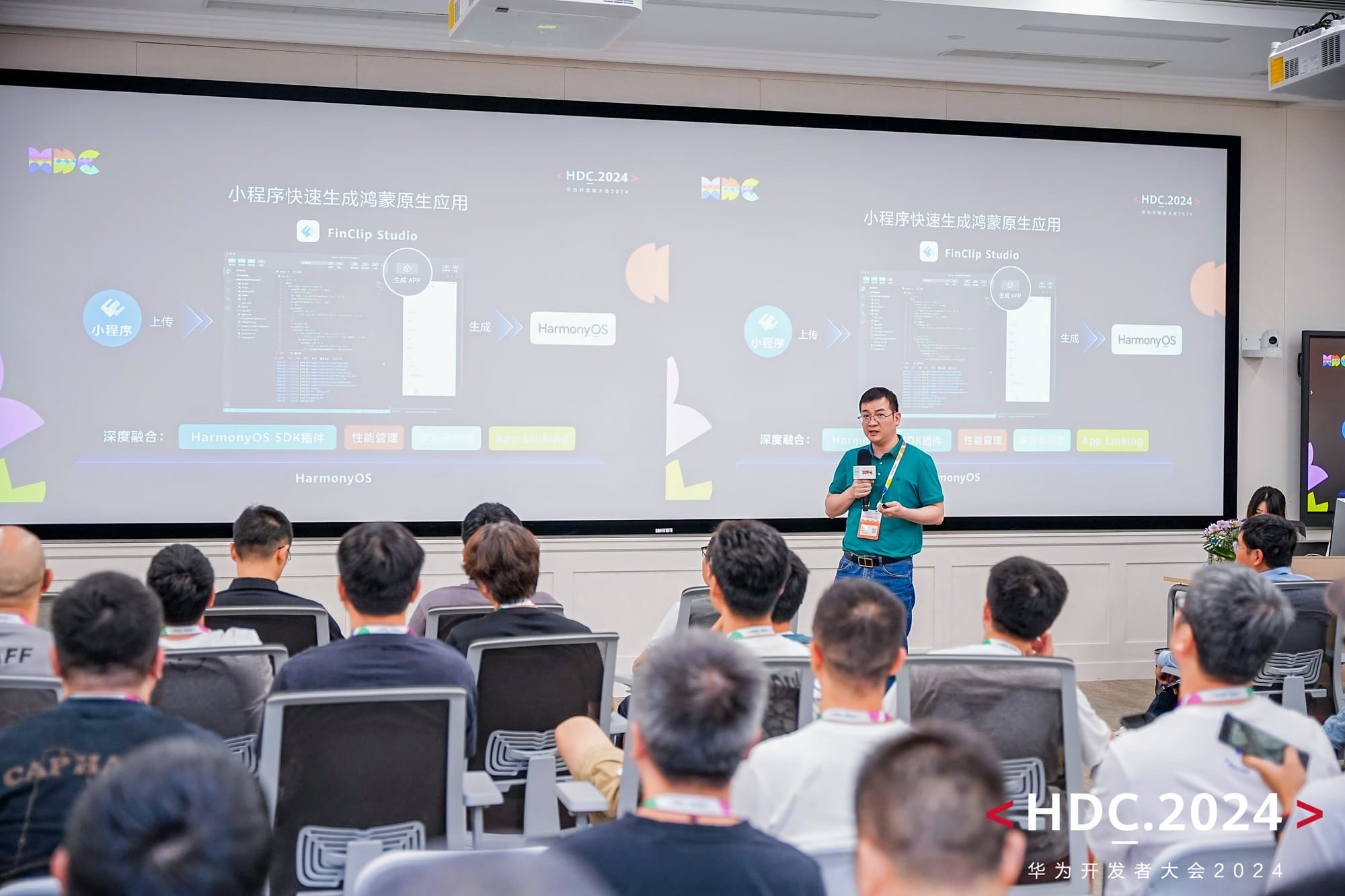 凡泰极客受邀出席HDC2024,并在鸿蒙生态伙伴SDK专场中,展示了如何利用领先的小程序技术和实践经验,加速轻量级鸿蒙原生应用的开发。
