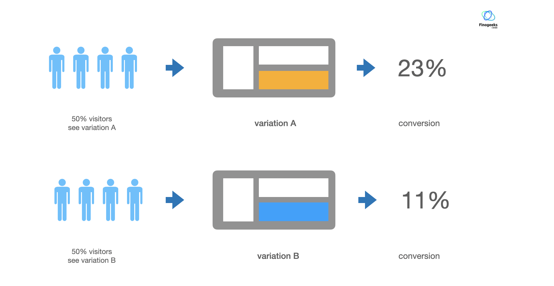 两套产品方案,分别让 50% 的用户各自访问不同的两个方案,观察谁的数据效果更好。
