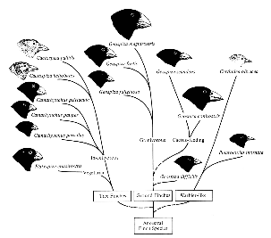 达尔文雀族群是生活在加拉帕古斯群岛的多种近缘雀鸟物种的统称。他们之所以被称作为达尔文雀,是因为达尔文发现,它们在体型上几乎完全相同,仅仅只有鸟喙形态不同,并且种类多达十几种,分布在群岛不同的位置。研究结果证明,这些雀鸟族群源属同一种鸟类,因为群岛上不同地方的环境差异,让它们进化出了最适合当前环境的鸟喙。