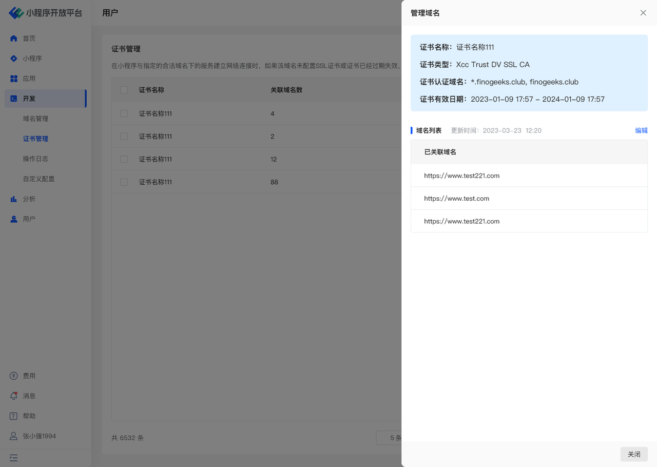 # 管理证书下关联的域名