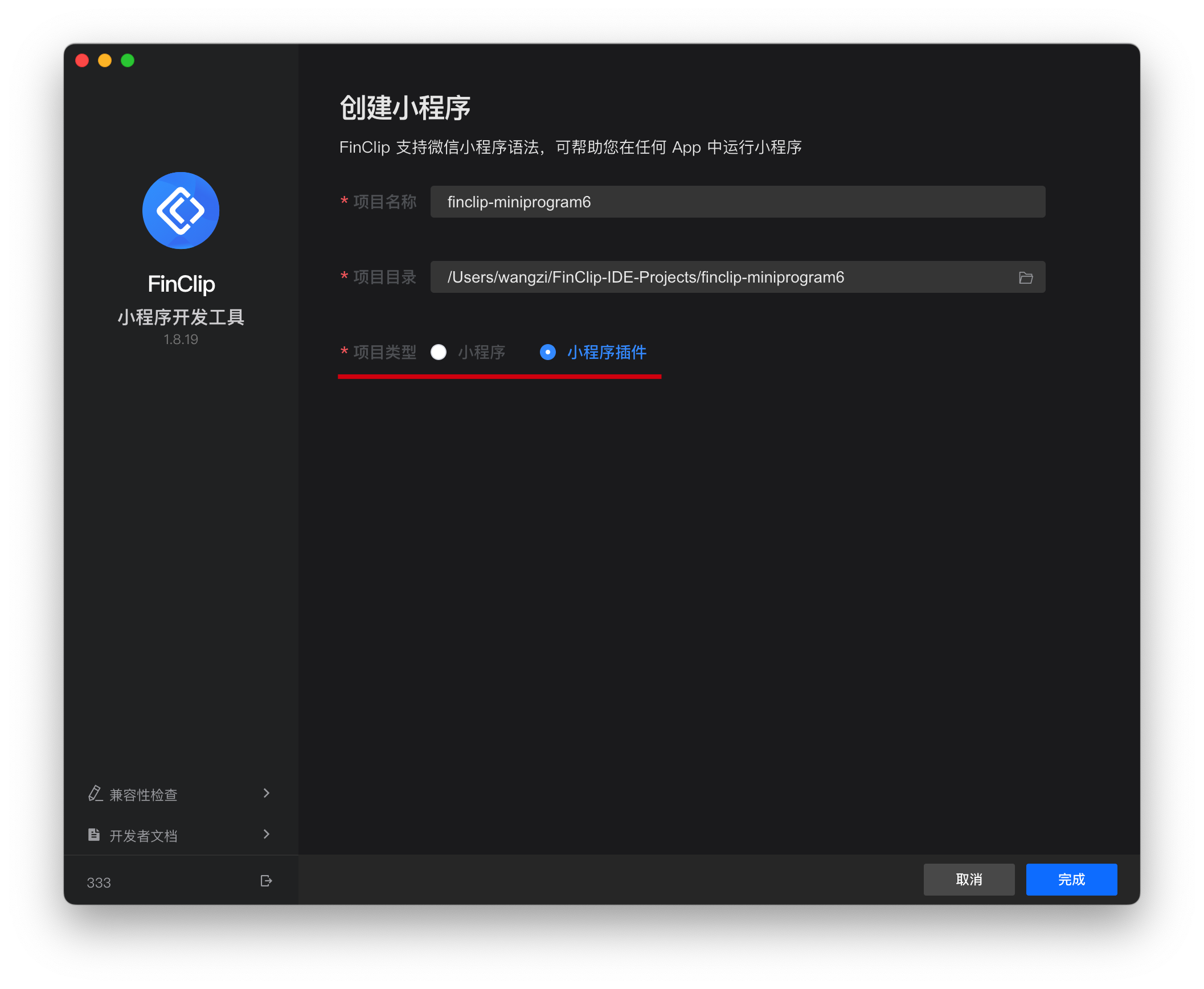开发者需要在开发者工具中选择创建小程序,并在项目类型中选择「小程序插件」。