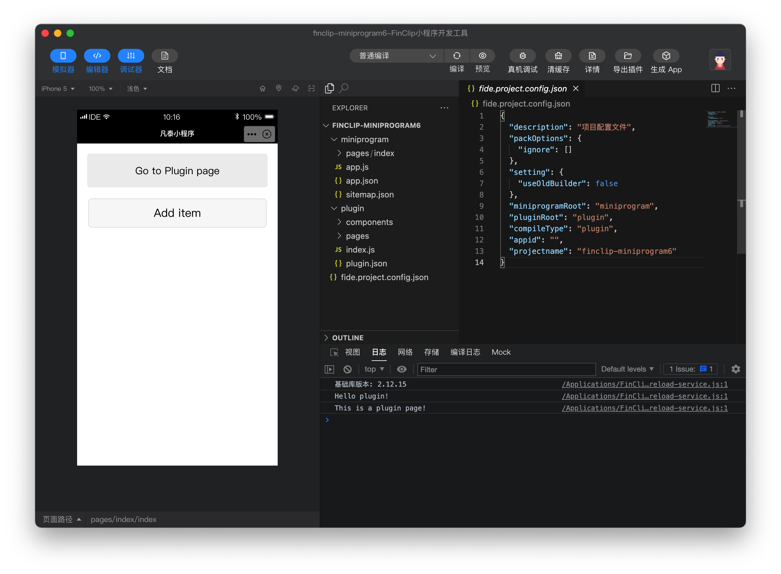 目录:放置 FinClip 小程序,用于调试插件;fide.project.config.json