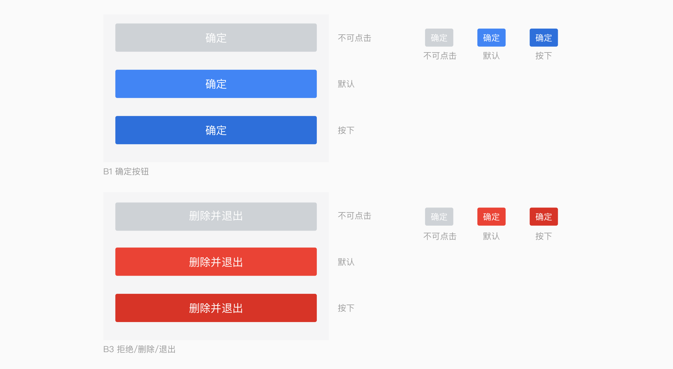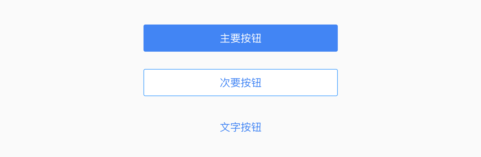 - 主要按钮:用于主行动点,一个操作区域只能有一个主按钮。