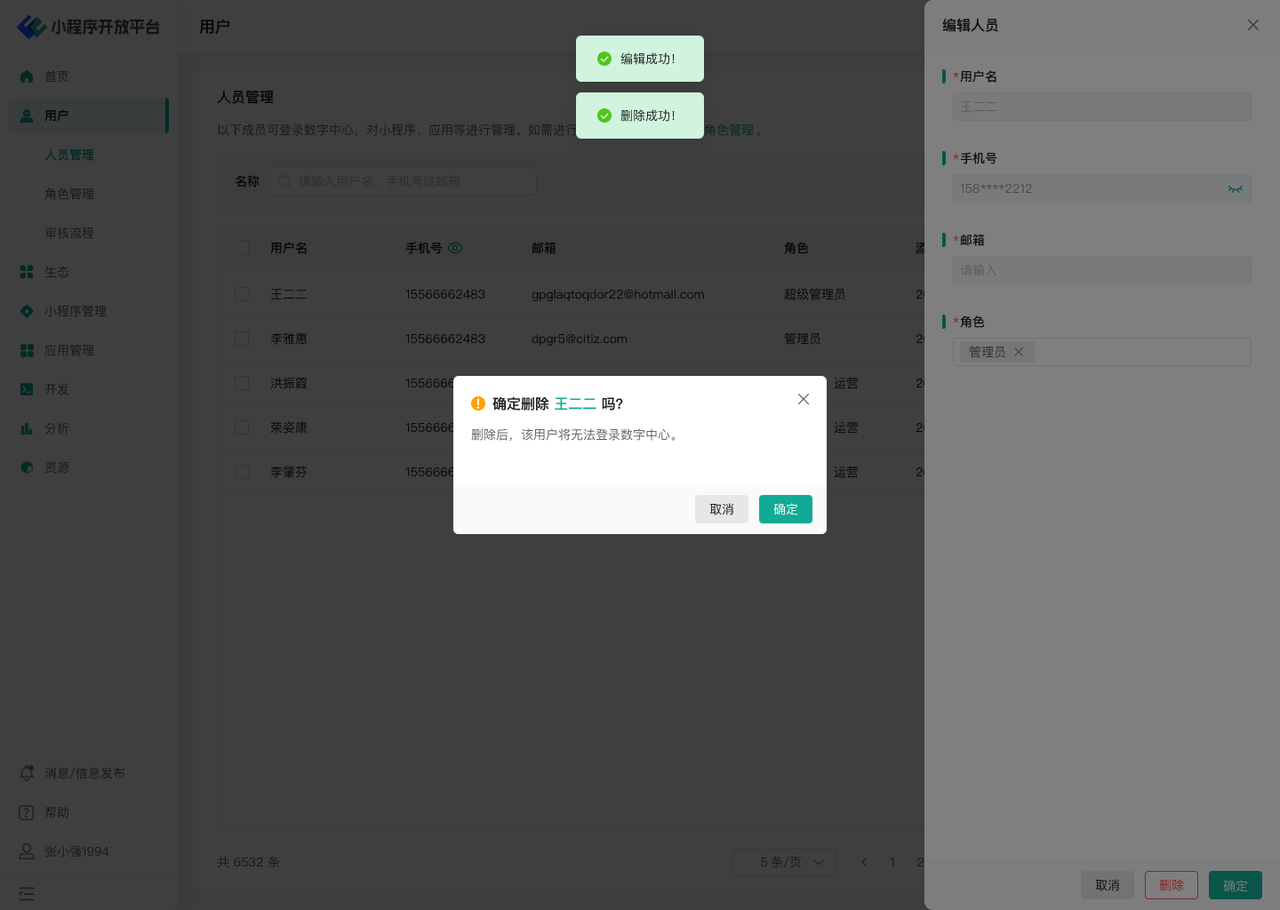 - 一旦将人员从数字中心删除,该人员无法再登录数字中心,此操作不可恢复